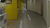 PVC塑膠地板對地面平整度和光潔度要求較高,根據(jù)用戶不同地面情況,公司技術人員做自流平施工。自流平水泥倒入地面,可增加地面的強度和光滑度,達到鏡面效果。